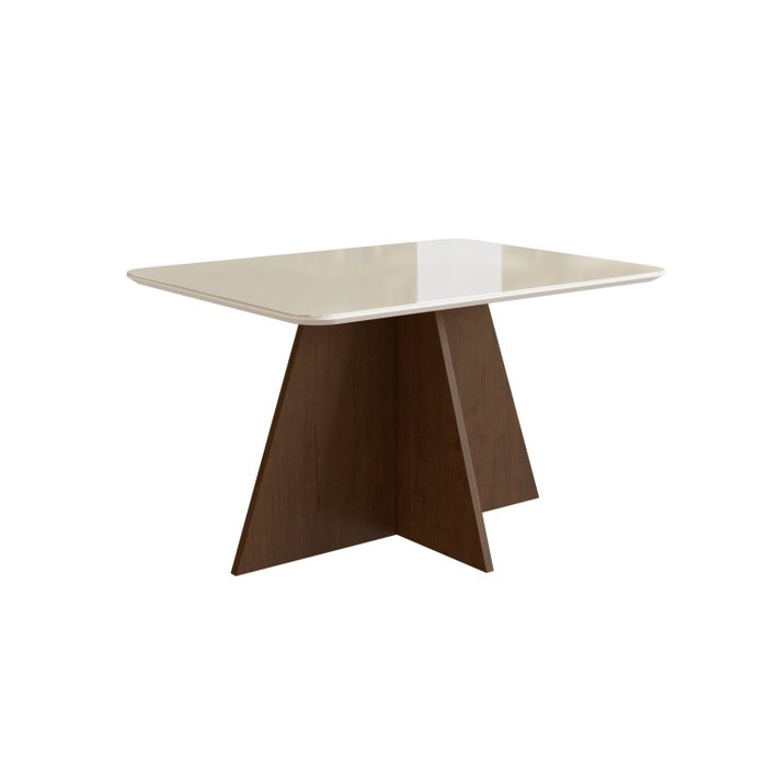 Mesa para Sala de Jantar 120x90cm com Vidro Lapidado Tabaco/Off White
