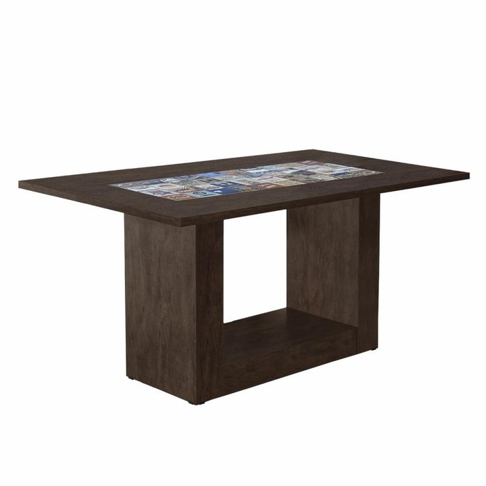Mesa Para Sala De Jantar Castanho Rústico Suiça Art Panta 160 X 90 com Azulejos Castanho Rústico