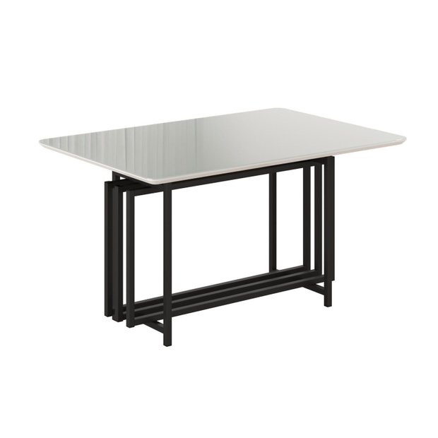 Mesa para Sala de Jantar Retangular 120x90cm Mdf com Vidro Pérola Preto Fosco / Off White
