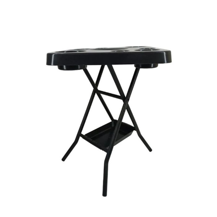 - Tampo de Plástico Duro - Centro Reservado Para Pratos - Dobrável Para Facilitar o Transporte - Fácil de Limpar e Guardar - Ponteiras em Plástico de Alta Resistência - Montagem: Encaixe simples - Estrutura dos Pés em Plástico Duro e Resistente, não enferruja, não risca o chão tendo assim uma vida útil muito maior que o metal - Tampo em Poliestireno - Tampo na Cor: Preto Medidas: Altura 60 cm Largura 45 cm Profundidade 45 cm Peso Máximo Recomendado sob o Produto: 2,5kg