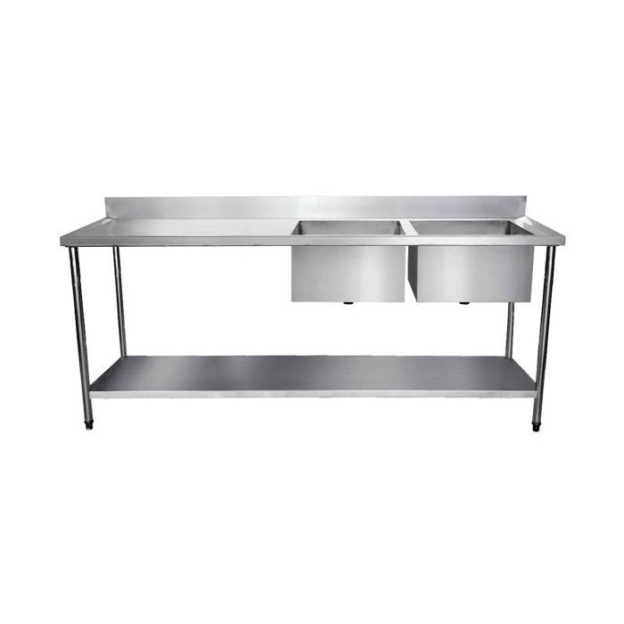 Mesa Pia Aço Inox Industrial com Paneleiro e Duas Cubas 50x40x25cm (Dir) - 190x60x80cm - Brascool