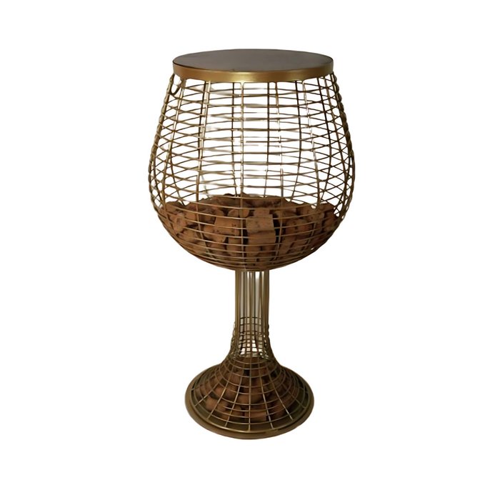 Mesa Porta Rolhas de Chão Dourada com Tampa de Madeira Pinus
