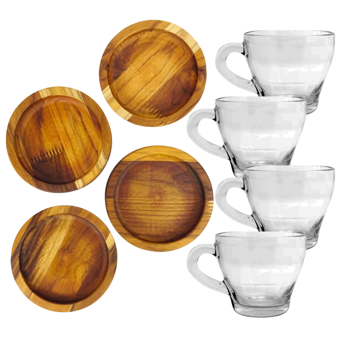 Mesa Posta Cafe da Manha Jogo de Xícara com Pires de Madeira transparente