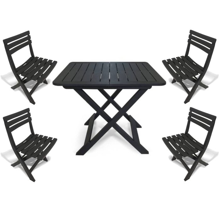 Mesa Quadrada Dobrável 80x72cm Preta + 4 Cadeiras Dobráveis Preto