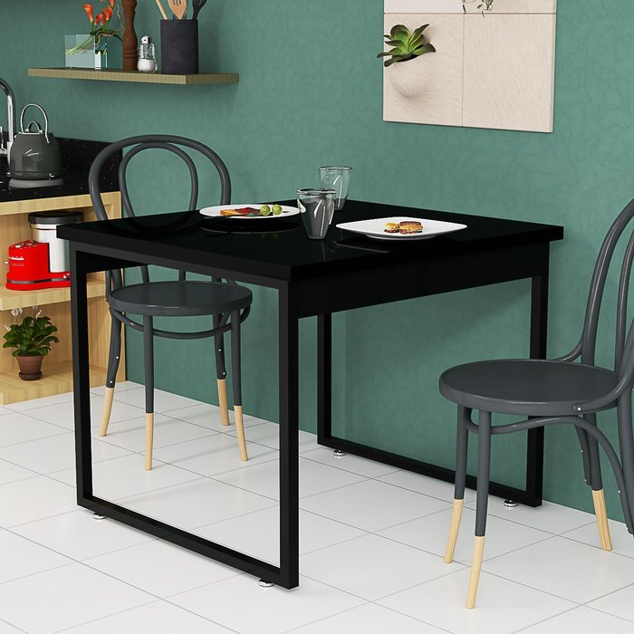 Mesa Quadrada para Cozinha Pequena Estrutura de Ferro Preta Moderna:preto Preto