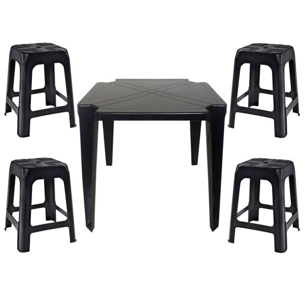 Mesa Quadrada Plástico Monobloco 70cm Preta + 4 Banquetas Empilháveis Preto