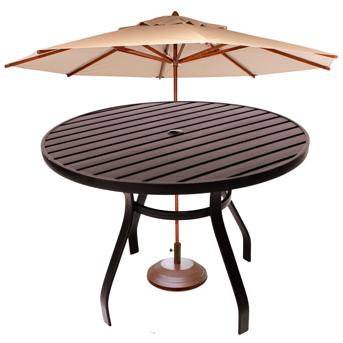 Mesa Redonda 1,20m de Alumínio Marrom + Guarda Sol Piscina Jardim Marrom