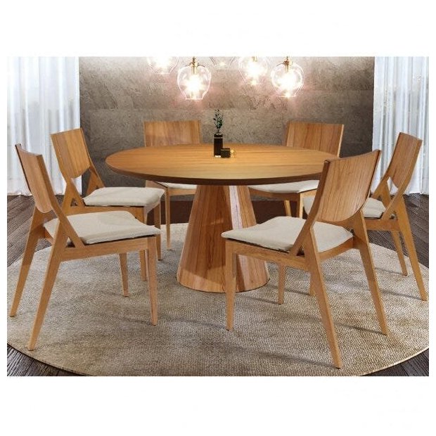 Mesa Redonda 130cm com 6 Cadeiras Lana Móveis Rafana Cinamomo/Bege