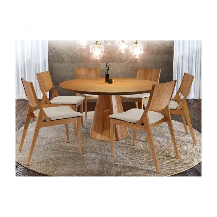 Mesa Redonda 150cm com 6 Cadeiras Lana Móveis Rafana Cinamomo/Bege