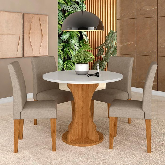 Mesa Redonda com 4 Cadeiras Pérsia 0,9 Cin/off/bege - Móveis Arapongas Cinamomo/off White/bege
