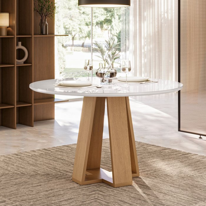 Mesa Redonda com Tampo de Vidro Moderno Mel/Off White