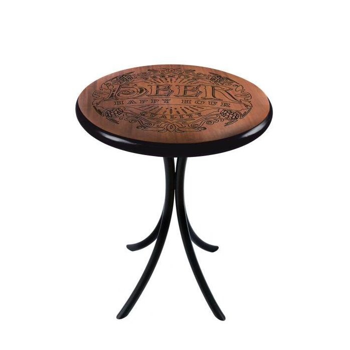 Mesa Redonda de Madeira para Sala de Estar - 60cm Diâmetro - Beer Happy Hour - Preta