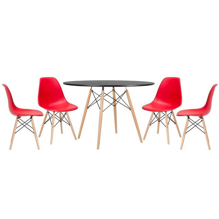 Mesa redonda Eames 120 cm + 4 cadeiras Eiffel DSW Mesa preto com cadeiras vermelho