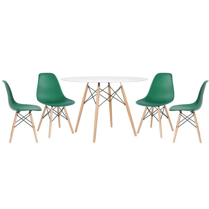 Mesa Redonda Eames 120 Cm Branco + 4 Cadeiras Eiffel Dsw Verde Escuro