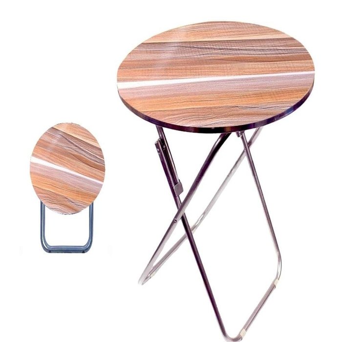 MESA REDONDA EM ALUMINIO DOBRAVEL ESTILO MADEIRA 90CM FESTAS CAMPING MULTIUSO