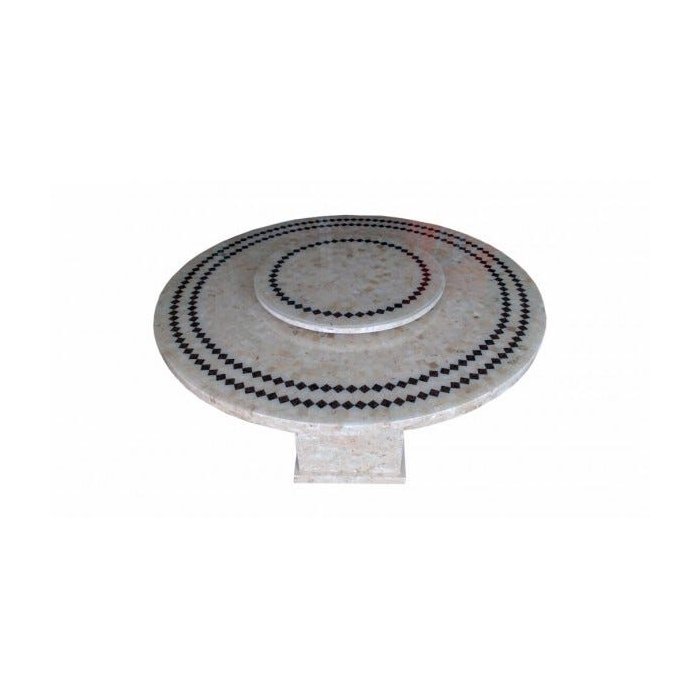 Mesa Redonda Mosaico com Giratório Alentejo 1,80ØPedras usadas: Mármore Travertino, Granito Café ImperialAcabamento final vitrificado em Resina para Área interna ou Polida para Área ExternaOBS com Resina para área interna coberta, peças em resina não poder ser colocados em area externa ou sem resina em area externa ( caso coloque Resina na área Externa perderá a garantia.Sem Resina para Área Externa:-Será montado de uma forma em que resistirá ao Sol e as pedras serão polidas (sem Resina)Apóa a compra avise se que com ou sem Resina.Garantia 1 ano para defeito de fabricação.