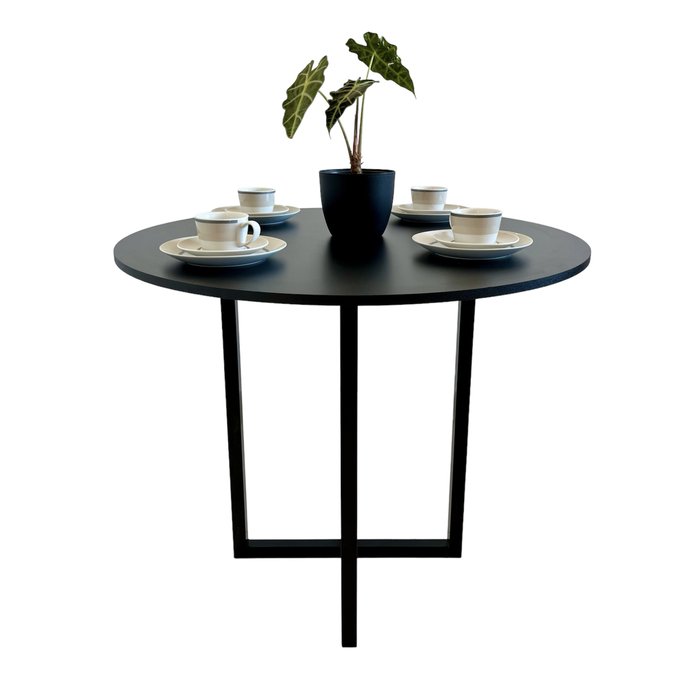 Mesa Redonda Preta Moderna Pequena Estilo Industrial 90cm 4 Lugares para Cozinha Varanda Gourmet Sal preto