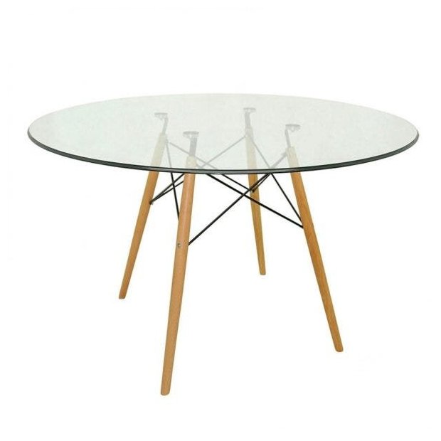 Mesa Redonda Tampo Vidro e Base Madeira Eiffel Móveis Vidro e madeira