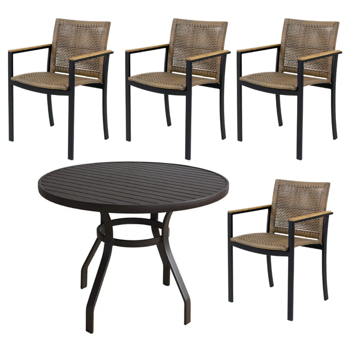 Mesa Redonda Toda de Alumínio com 4 Cadeiras de Área Externa em Alumínio e Fibra Sintética