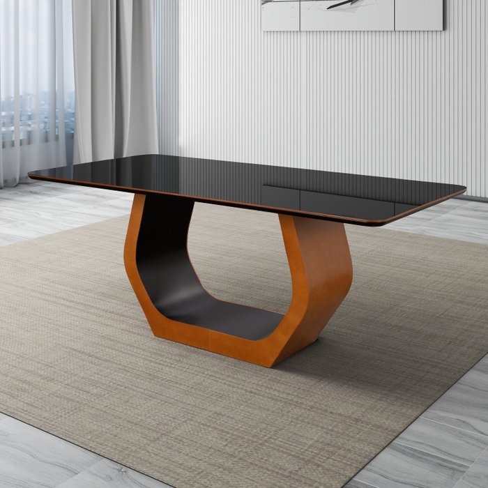 Mesa Retangular em Madeira Maciça e Verniz Cristal Authentic Champagnhe/Preto