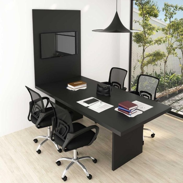 Mesa Reunião 220cm X 100cm e Painel para Tv até 37 Polegadas Cor:preto
