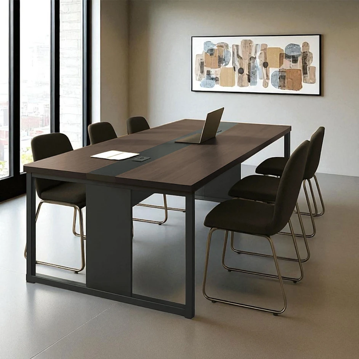 Mesa Reunião 6 Lugares Grande 2,40m Freijó com Passa Fio Freijó/Preto