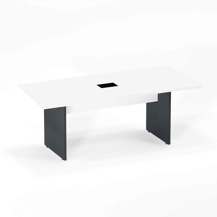Mesa Reunião Power Box Pé Painel P25 Pandin 2,0 M Branco e Grafito Branco e Grafito