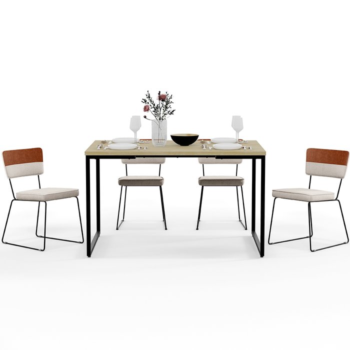 Mesa Rivera Nature 136cm Com 4 Cadeiras Allana F01 Faixa Couríssimo Camel Linho Cru - Lyam Decor Nature fosco