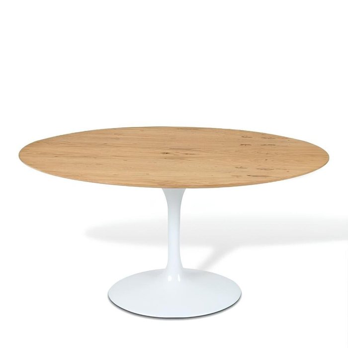Mesa Saarinen Oval criada pelo Eero Saarinen. Foi projetada em 1956 como parte da icônica Coleção Pedestal, Saarinen procurou resolver a bagunça em casas e escritórios americanos criados por pernas de cadeiras e mesas convencionais, deixando assim um ambiente elegante e sofisticado.