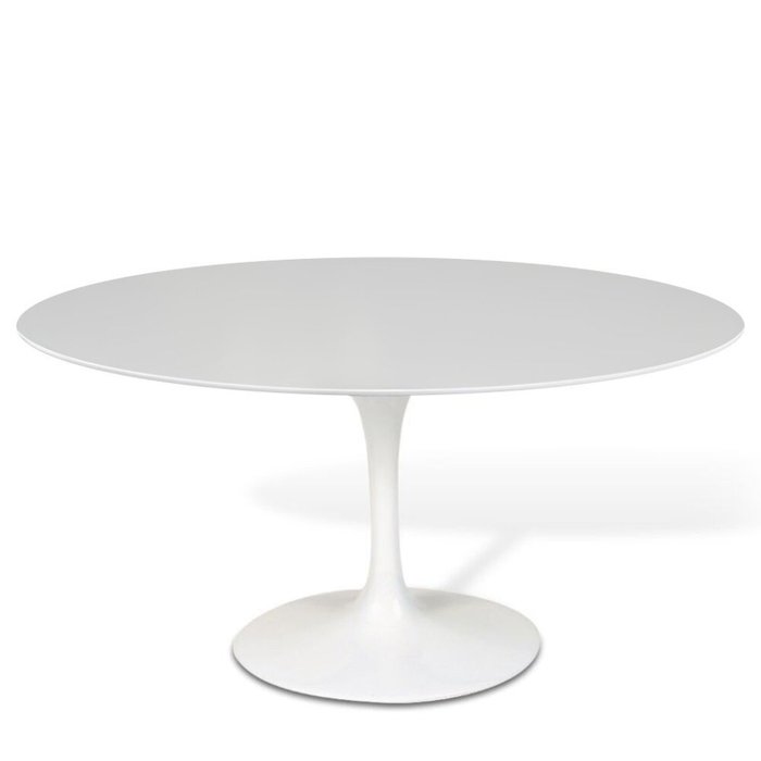 Mesa Saarinen Oval criada pelo Eero Saarinen. Foi projetada em 1956 como parte da icônica Coleção Pedestal, Saarinen procurou resolver a bagunça em casas e escritórios americanos criados por pernas de cadeiras e mesas convencionais, deixando assim um ambiente elegante e sofisticado.