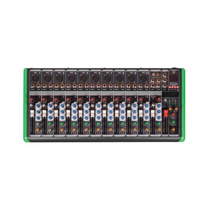 10 canais com pré-amplificador de microfones e phantom power (+48v)