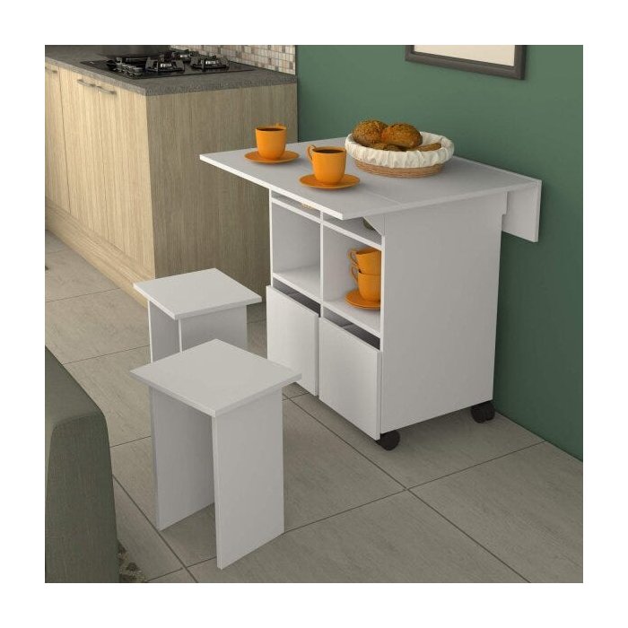 Mesa Tampo Dobrável 4 Bancos Nova Mobile Branco