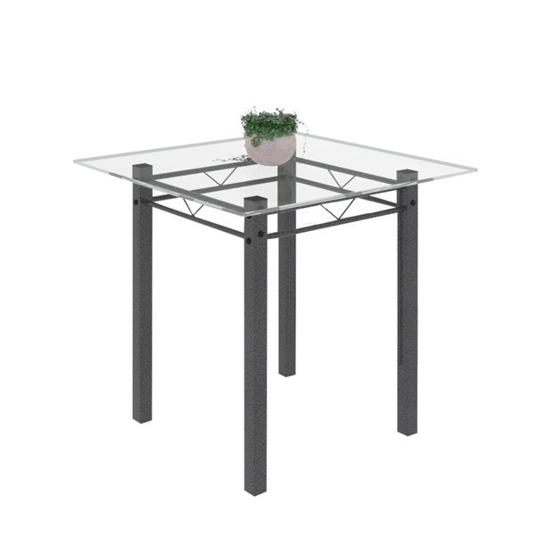 Mesa Tubular 75x75cm Tampo de Vidro 4 Lugares Júlia Martelado Prata