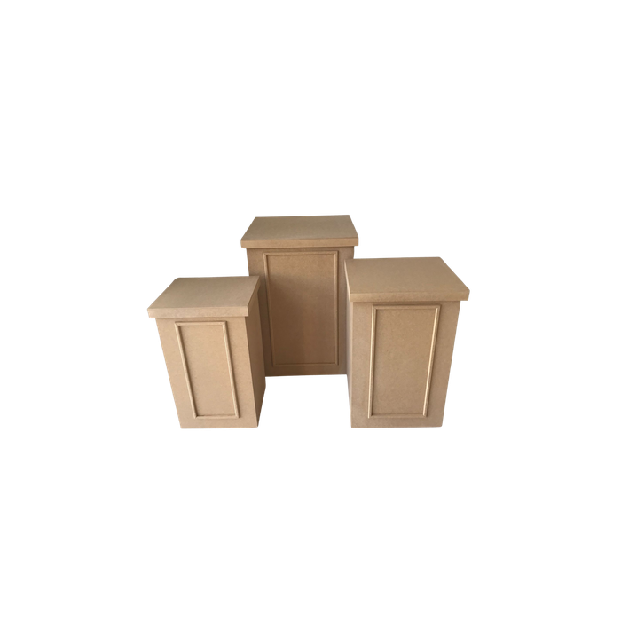 TRIO DE MESAS DOBRÁVEIS EM CUBOS BOISERIE - em MDF CRU - PARA DECORAÇÃO E FESTAS