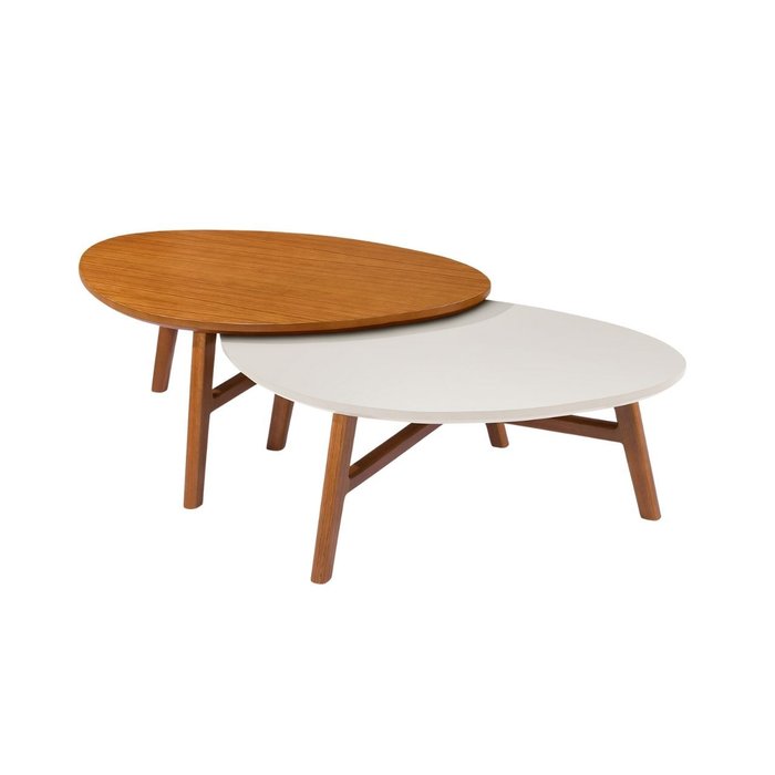 Conjunto Mesa de Centro Orgânica Manaus – Madeira Maciça com Tampos Off White e Castanho.