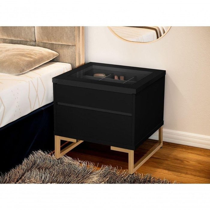 Mesinha De Cabeceira Preta Zap Elegante Gaveta Porta Jóias