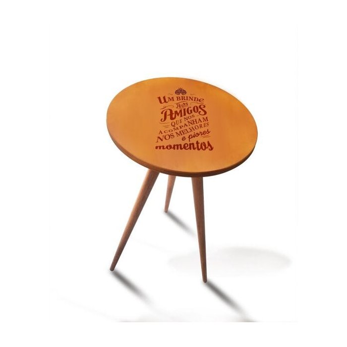 Mesinha Madeira Rústica Petisco Cervejeiro Churrasco Tripé Palito Retrô Gravação Brinde aos Amigos