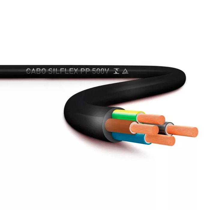 O que é Polipropileno / PP?• Polipropileno, também conhecido como PP, é uma forma de termoplástico. PP é normalmente usado como isolamento de fios. PP é semelhante ao polietileno, (PE), mas PP é um composto mais duro. Como é um composto mais duro, o PP pode ser usado em aplicações de paredes finas.Aplicação:• O Cabo Silflex PP 500V possui grande flexibilidade e excelente resistência a sua movimentação. Ideal para ligações de aparelhos elétricos em geral, móveis ou fixos, como eletrodomésticos, ferramentas motorizadas e extensões.Condutor:• Fios de Cobre, têmpera mole, classe 5 atendendo a norma ABNT NM 280.Isolação:• Composto termoplástico polivinílico tipo PVC/D.Cobertura:• Composto termoplástico polivinílico tipo PVC/ST5.Norma de Referência:• NBR NM 247-5 - Cabos isolados com policloreto de vinila (PVC) para tensões nominais até 450/750 V, inclusive Parte 5: Cabos flexíveis (cordões) (IEC 60227-5, MOD).Nornas Aplicáveis:• NBR NM 280 e NBR NM 247-2.Designação do Produto:• 247 NM 53-C5.Cor das Veias dos Cabos Multipolares:• 2 Condutores - Preto e Azul-Claro;• 3 Condutores - Preto, Azul-Claro e Verde/Amarelo;• 4 Condutores - Preto, Azul-Claro, Verde/Amarelo e Marrom;• 5 Condutores - Preto, Azul-Claro, Verde/Amarelo, Marrom e Laranja;Dados Técnicos:• Marca: SIL• Produto: Cabo PP Flexível• Modelo: 4x4,0mm• Comprimento: 01 Metro• Cor: Preto• Isolado em: Composto termoplástico polivinílico (PVC) tipo BWF• Classe térmica: 70°C.• Tensão de isolação: 300/500 V.• Extra flexívelLocais de Instalação:• Uso Doméstico• Ligação de Equipamentos e Máquinas PortáteisDimensões Aproximadas:• Diâmetro Nominal Do Condutor(mm): 2,0• Espessura Nominal Da Isolação(mm): 0,8• Espessura Nominal Da Capa(mm): 1,0• Diâmetro Nominal Externo(mm): 8,8*Imagens meramente ilustrativas*