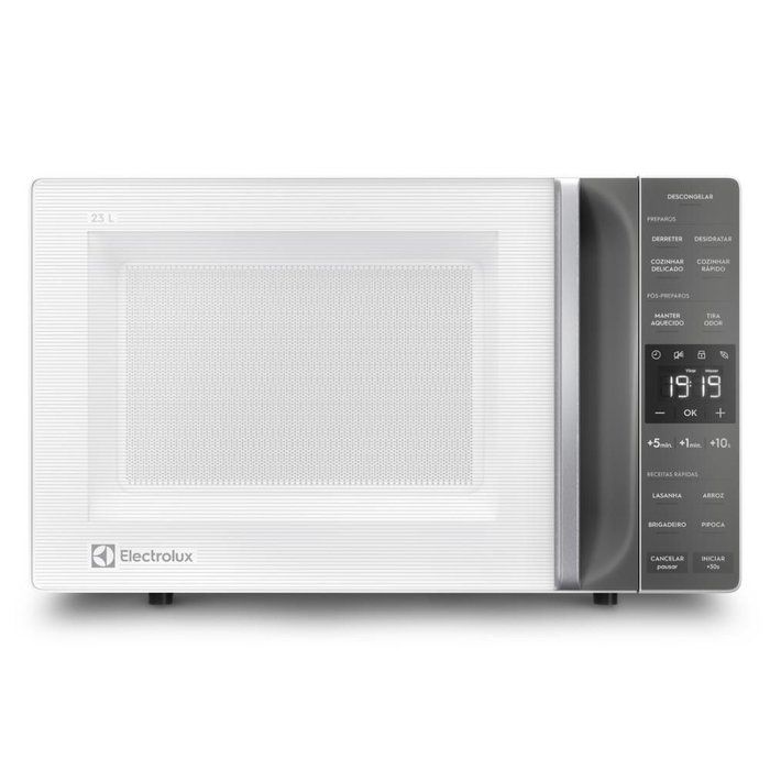 Micro-ondas Electrolux Efficient 23 Litros Branco ME23B 220VO Micro-ondas Electrolux Branco 23L Efficient (ME23B) é pensado para facilitar sua rotina na cozinha. Ele conta com a tecnologia de Descongelamento Assistido da Electrolux para alcançar resultados mais uniformes ao descongelar os ingredientes, avisando no painel o momento certo de virar ou mexer os alimentos.Seu painel inteligente, com ajustes automáticos de potência, disponibiliza quatro modos de preparo diferentes e funcionais para tornar sua rotina mais prática: derreter; desidratar; cozinhar rápido e cozinhar delicado.Acione a Função Desidratar para fazer chips de frutas ou vegetais, além de desidratar ervas para conservá-las por mais tempo. Selecione a Função Cozinhar Delicado se quiser preparar alimentos macios, como peixes e alguns tipos de vegetais. Para vegetais mais duros e carne bovina, utilize a Função Cozinhar Rápido.O Micro-ondas Electrolux possui a função Manter Aquecido, que conserva suas receitas recém preparadas quentes e deliciosas até o consumo. A função Tira Odor é ideal para manter seu produto livre de possíveis odores dos preparos anteriores graças ao sistema de recirculação do ar interno.ESPECIFICAÇÕES TÉCNICASCapacidade: 23 Litros