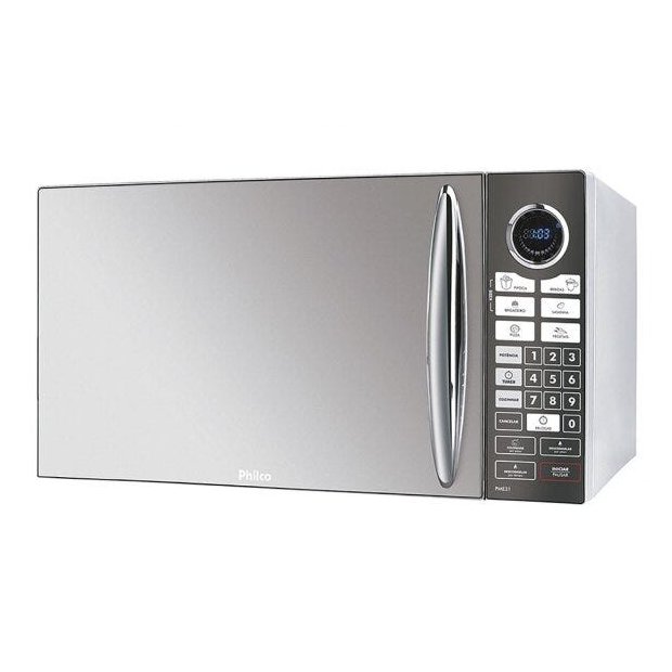 Forno Micro-ondas PME31 30 Litros é a melhor escolha para uma cozinha bem equipada, o design inovador com Porta e Painel espelhados vão deixar sua cozinha com um look mais moderno e sofisticado.rnrnTeclas fáceis:rnKids - prepara de maneira rápida as receitas prediletas da garotada: brigadeiro e pipoca.rnCozinhar - prepara com apenas um toque as receitas: vegetais, lasanha, pizza e bebidas.rnTimer - programa o horário de preparo com antecedência.rnDescongelar - descongela por Peso ou por Tempo.rnPotência - vários níveis de potência para escolher de acordo com o tipo de alimento.rnTrava de Segurança - maior segurança para a família. O teclado pode ser bloqueado para evitar o uso indevido do produto por crianças.