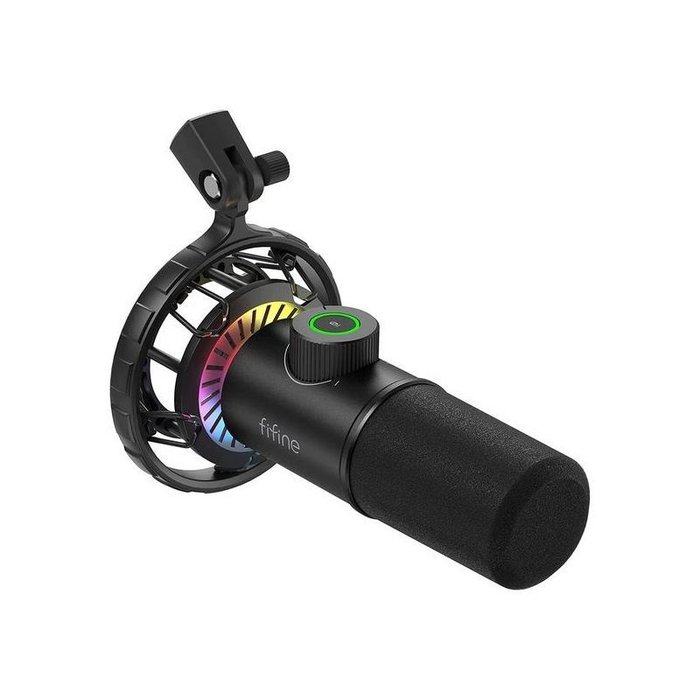 Microfone Usb Dinâmico Cardioide Fifine K658 - Iluminação Rgb - Cor Preto