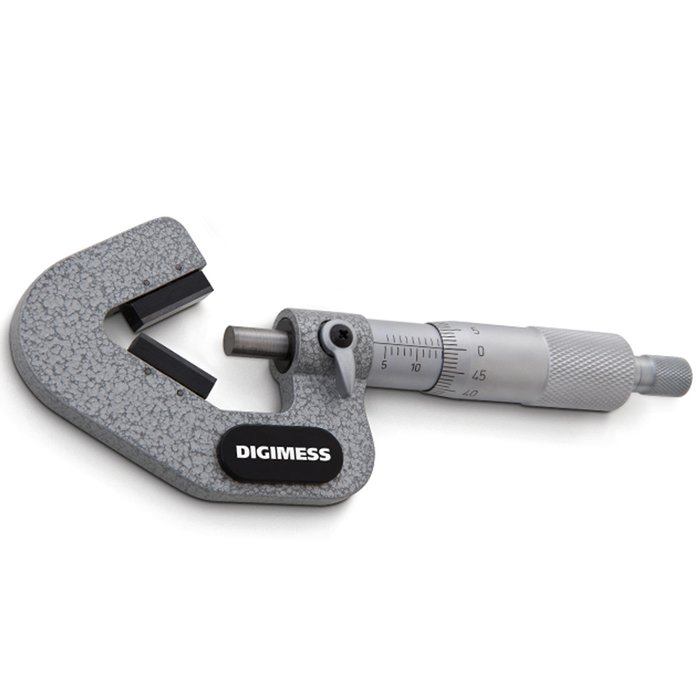Micrômetro Externo Batentes em V - Cap. 65-80mm(3 Cortes) - Ref. 113.077 - DIGIMESS O Micrômetro é um instrumento de leitura direta das dimensões reais do objeto, com precisão da ordem de milésimos. Ele é utilizado, principalmente, para medições de precisão superior a do paquímetro e para medidas de profundidade. ESPECIFICAÇÕES: - Usados para medição de diâmetros externos de ferramentas de corte com número ímpar de cortes;