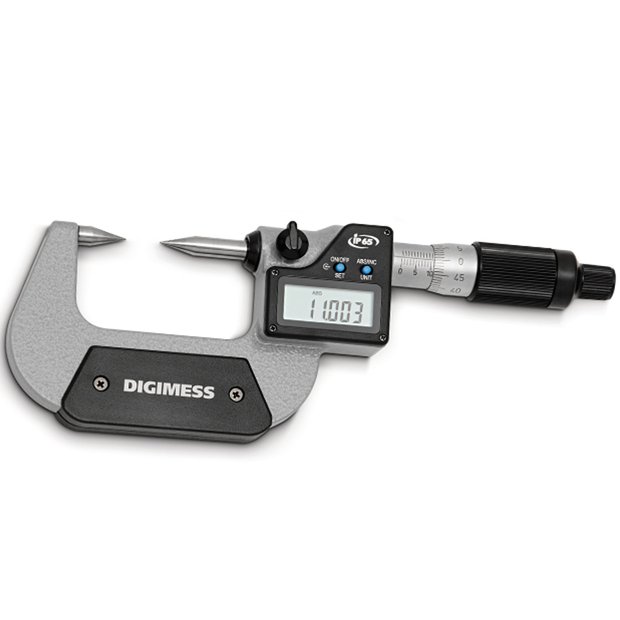 Micrômetro Externo Digitais Pontas Cônicas 30° - Cap. 0-25mm - Graduação De 0,01mm - Ref. 112.125A-NEW - DIGIMESS O Micrômetro é um instrumento de leitura direta das dimensões reais do objeto, com precisão da ordem de milésimos. Ele é utilizado, principalmente, para medições de precisão superior a do paquímetro e para medidas de profundidade. ESPECIFICAÇÕES: - Para medições de ranhuras, fundo de hélice de brocas, fresas e outras formas especiais de difícil alcance;