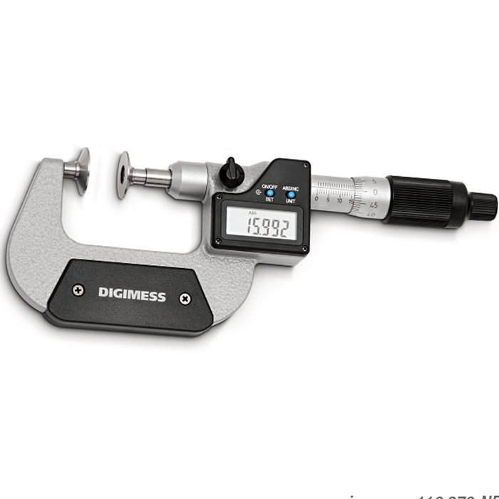 Micrômetro Externo Digital Dentes de Engrenagens (IP65) - Cap. 25-50mm/1-2' - Graduação De 0,01mm - Ref. 110.371-NEW - DIGIMESS O Micrômetro é um instrumento de leitura direta das dimensões reais do objeto, com precisão da ordem de milésimos. Ele é utilizado, principalmente, para medições de precisão superior a do paquímetro e para medidas de profundidade. DESCRIÇÃO: - Usados para medição da largura entre 3 dentes da engrenagem (medição W), além de espessura de papel, plástico e materiais mais macios