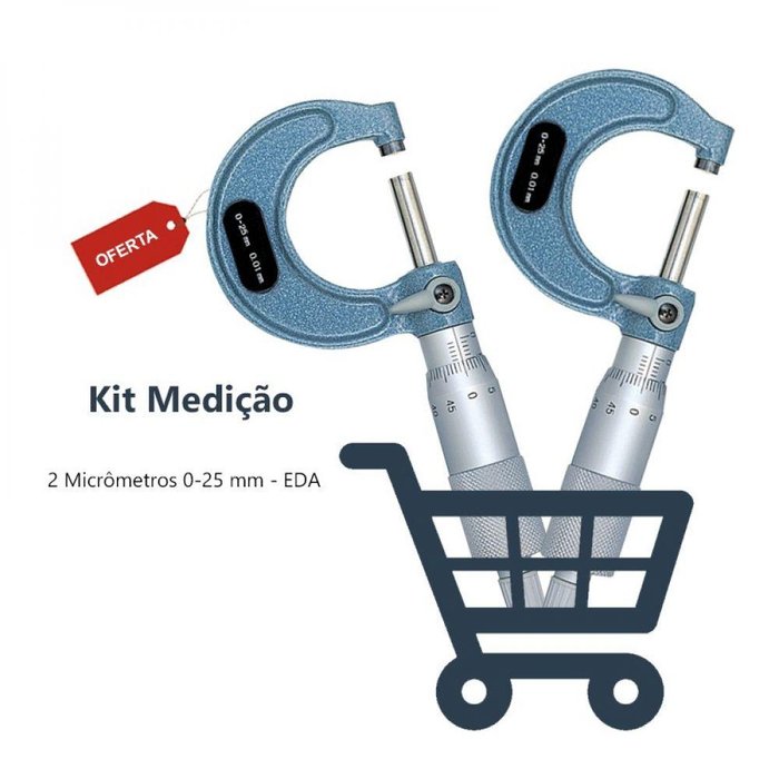Micrômetro Externo Med. 0-25 mm - Resolução 0,01mm - 2 Peças O QUE É UM MICRÔMETRO O micrômetro é um acessório metrológico capaz de realizar medições em suas peças. Ele possui um tambor que permite a ferramenta deslizar e abrir a sua haste, para que dessa forma você consiga encostar o item a ser medido e realizar a leitura. PARA QUE SERVE O MICRÔMETRO O Micrômetro é uma ferramenta capaz de lhe proporcionar medidas extremamente precisas, permitindo um trabalho mais exato em seus produtos.Ele possui diversos tamanhos, podendo variar de medidas mais curtas até medidas mais longas. ITENS INCLUSOS NO KIT MiCRÔMETRO - (02) Micrômetro de 0-25mm; ESPECIFICAÇÕES MICRÔMETRO 0-25 - Marca: EDA;