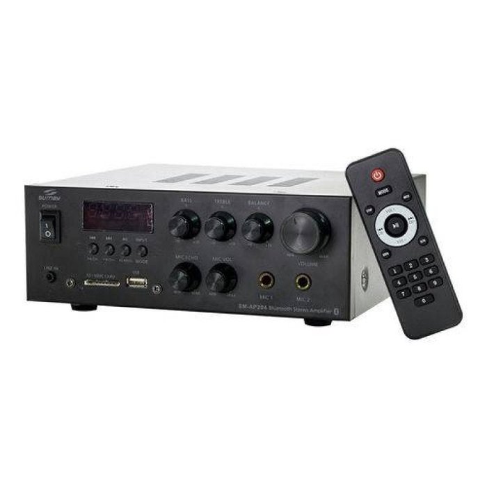 O Mini Amplificador Stereo da Sumay é constituído com a mais alta tecnologia com 30W de potência. Sistema compatível com USB, cartão de memória SD, rádio FM, AUX e Bluetooth.
