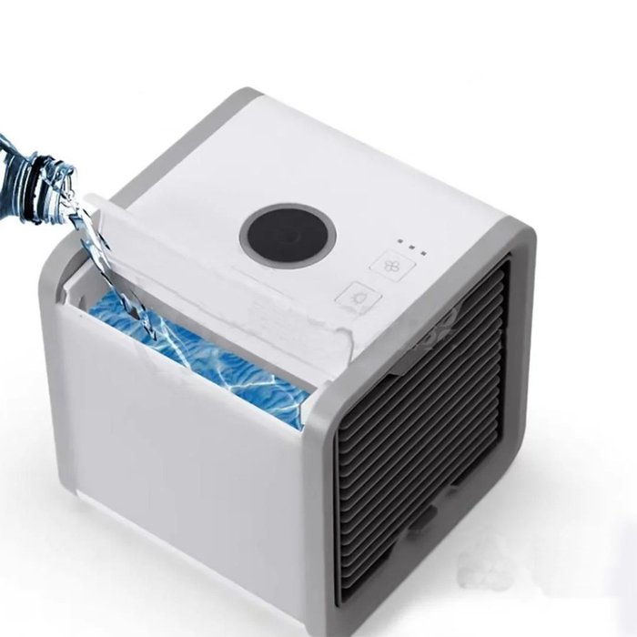 Mini Ar Condicionado Portátil Arctic Air Cooler 3 Velocidade Perfeito para todas as estações do ano, pois funciona como ar-condicionado, purificador e umidificador de arVocê pode deixar em qualquer ambiente da casa, em escritórios, estabelecimentos, e onde você quiser Você pode fazer seus afazeres domésticos, deixar na mesa de estudos ou trabalho e se refrescar durante o verão.Possui 3 intensidades (forte, médio, fraco) e visor para identificar a velocidade.Possui botão para ligar ou desligar a luz de led que indica as velocidades.Para deixar o ambiente mais frio, molhe o filtro e coloque no congelador antes de usarA água do reservatório dura de 8 a 10 horas, dependendo da velocidade utilizada. Pode utilizar gelo também no reservatório.Refrigera até 2mDimensões: 17cm x 14,5cm x 16cmPeso: 850 gramasAlimentação: USB (funciona utilizando carregador de celular, powerbank ou conectando diretamente no notebook)Velocidade: 3 modos (Alto/Médio/Baixo)Capacidade do tanque de água: 700mlTipo de climatização: FrioPeso: 1kgÉ umidificador: SimÉ purificador de ar: SimCom função de ventilação: SimCapacidade de água: 0.5LPotência: 30WQuantidade de velocidades: 3Inclui controle remoto: NãoItens Inclusos1 Aparelho Mini Ar Condicionado1 Cabo USB (não acompanha caixa de alimentação).1 Manual de instruções em ingles