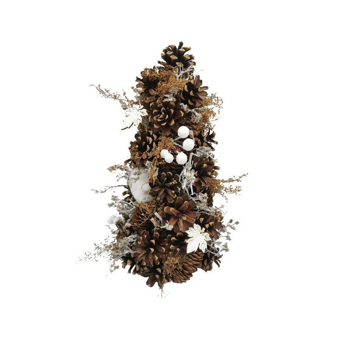 Traga a delicadeza e o charme da natureza para sua decoração natalina com a Mini Árvore de Natal com Flores de Algodão, Pinhas e Folhas Envelhecidas - 33cm, criando um ambiente aconchegante e cheio de estilo!
