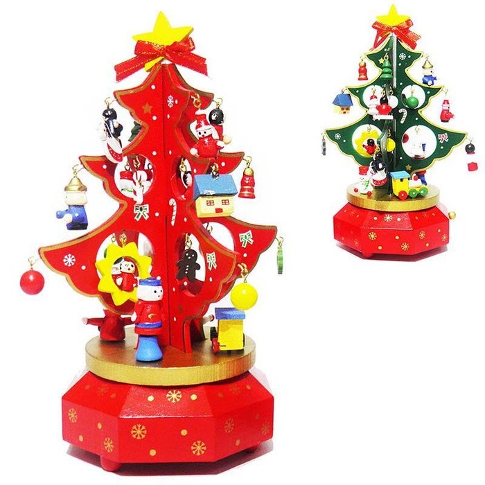 Mini Arvore de Natal Musical Toca e Gira Madeira Enfeite Natalino Movimentio - Vermelho