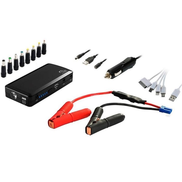 Deu problema no seu carro? Você mesmo vai resolver de forma rápida, prática e segura, além de poder carregar seu celular e notebook em qualquer situação. O kit possui uma bateria de 12 volts com capacidade de 8100mah, para você conseguir dar partida no seu carro e carregar seus equipamentos eletrônicos com extrema facilidade. Ele é compatível com a maioria dos conectores do mercado pois possui um cabo com todos os modelos de conectores tanto para celular como para notebooks. As saídas para uso podem ser de 5V, 1V E 19V.